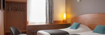 Le Brit Hotel Bressuire met à votre disposition 44 chambres modernes et parfaitement équipées, conçues pour répondre à toutes vos attentes de confort, que vous voyagiez pour affaires, en couple, en famille ou en groupe. Idéalement situé à proximité du parc d’activités et du Parc des Expositions, notre hôtel 3 étoiles à Bressuire vous garantit un séjour agréable, pratique et reposant.